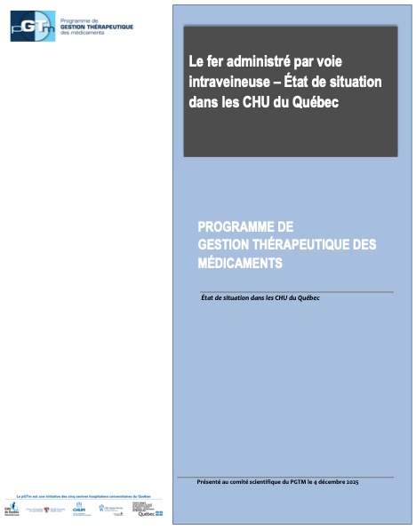 Le contenu de ce site est présenté aux fins d’information et d’éducation et ne vise pas à remplacer des soins pharmaceutiques et médicaux appropriés. Ce site s’adresse à des professionnels de la santé. Bien que tous les efforts soient déployés afin d’assurer l’exactitude et la mise à jour des documents, le PGTM ne peut garantir que les données retrouvées sur le site sont à jour et complètes. Le PGTM n’assume aucune responsabilité découlant d’une erreur, d’une omission ou de l’emploi des renseignements fournis dans son site.