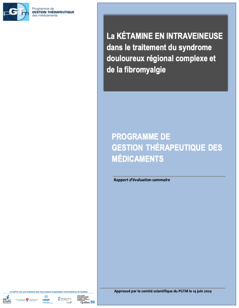 La kétamine en intraveineuse dans le traitement du syndrome douloureux régional complexe et de la fibromyalgie – Rapport d’évaluation sommaire – Septembre 2024