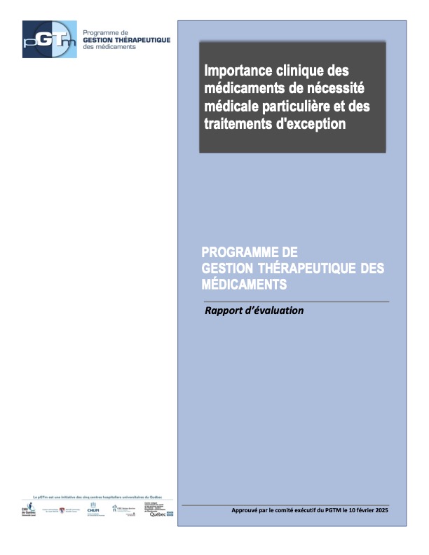 Importance clinique des médicaments de nécessité médicale particulière et des traitements d’exception – Rapport d’évaluation – Février 2025